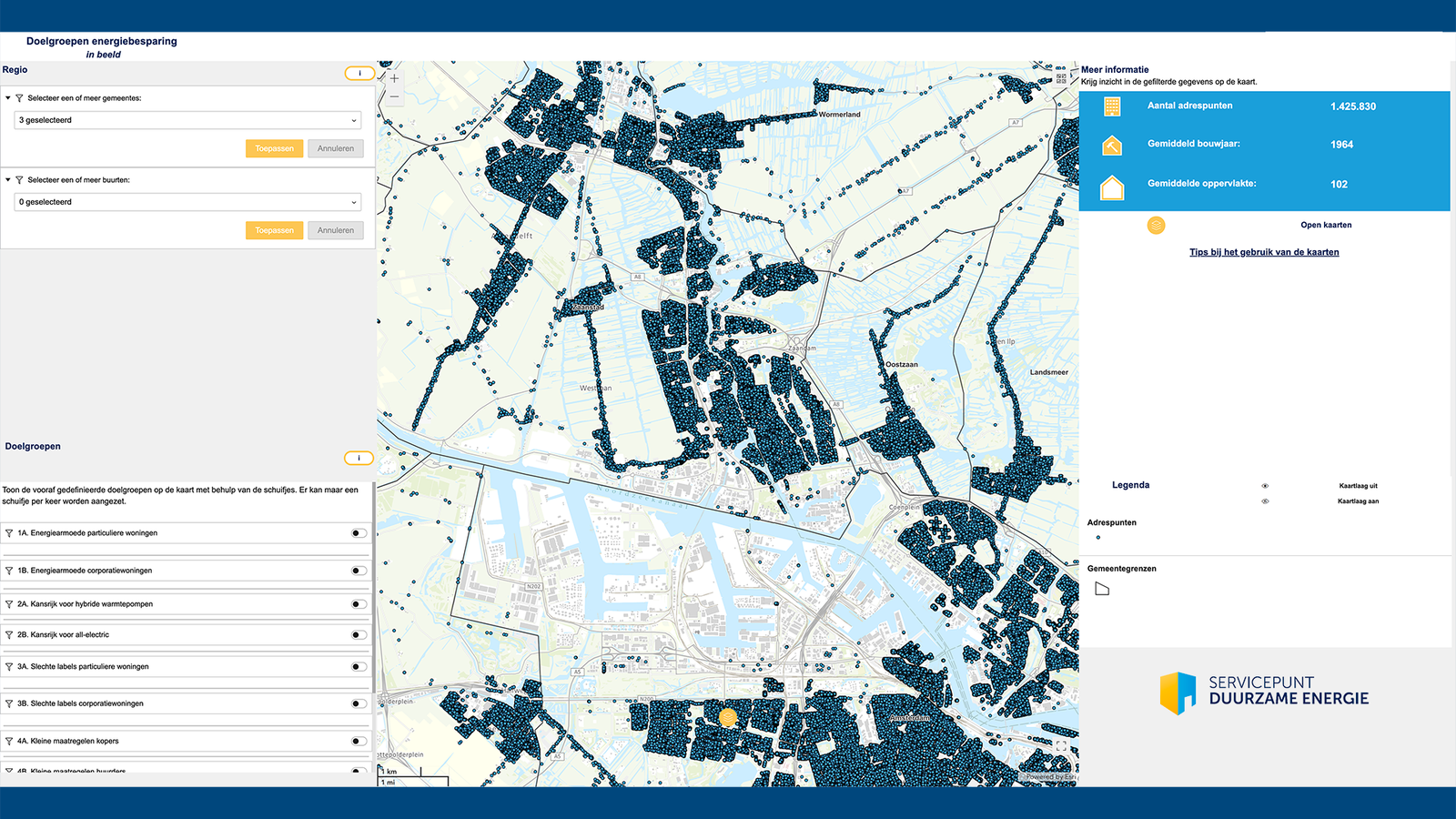 Deze tool helpt gemeenten en regio's met het in kaart brengen van doelgroepen om isolatie0 of energiebesparingsacties op te richten. Het is daarmee het startpunt voor de lokale aanpak van het nationaal isolatieprogramma (NIP) en voor gemeentelijke of regionale energiebesparingsprogramma's.